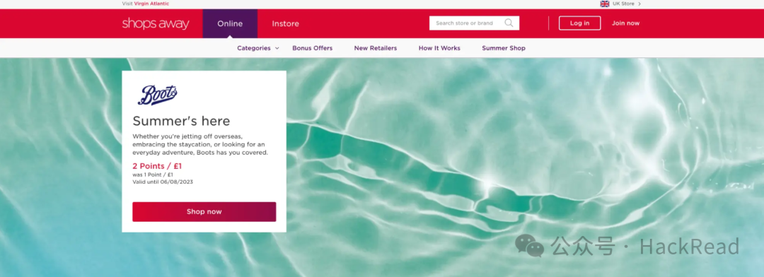 在我们对 points.com 资产进行测试的过程中,我们发现了一个由维珍奖励客户使用的网站,用于在合作伙伴网站上购物时赚取积分,该网站为“shopsaway.virginatlantic.com”。