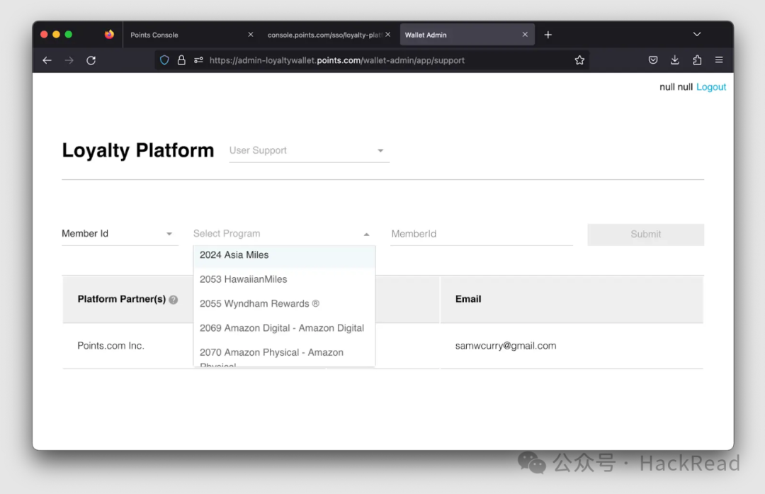 在意识到我们在航空公司网站上无法进一步造成影响后,我们将注意力转回到最初发现的网站,该网站是由 points.com 员工和奖励计划所有者用于行政管理他们的客户和奖励计划的。