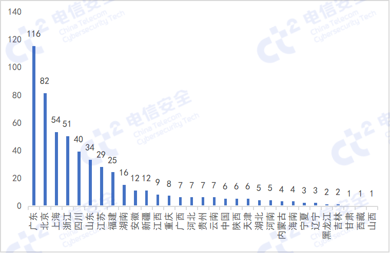 根据失陷IP资产的归属地统计,Mallox勒索团伙的攻击活动呈现明显的区域性分布特征,主要集中在我国经济发达地区及关键基础设施集中的省份,广东、北京、上海、浙江四省市合计占比超50%,表明攻击者倾向于针对数字化程度高、企业密集的区域。