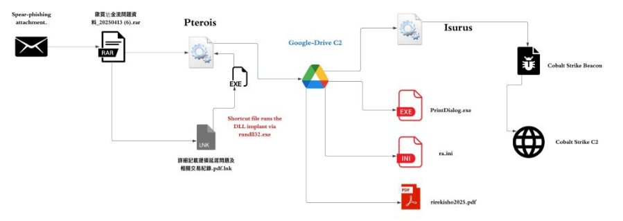 2025年4月,Seqrite研究人员发现了一个名为“歐買尬金流問題資料_20250413 (6).rar”的恶意压缩包,其中包含一个恶意LNK文件和一个PNG格式的伪装文件。经分析,这个PNG文件实际上是一个DLL植入物,名为Pterois。此次攻击行动以教育机构和机械制造行业为目标,通过发送伪装成简历的诱饵文件,诱导受害者打开并执行恶意代码。