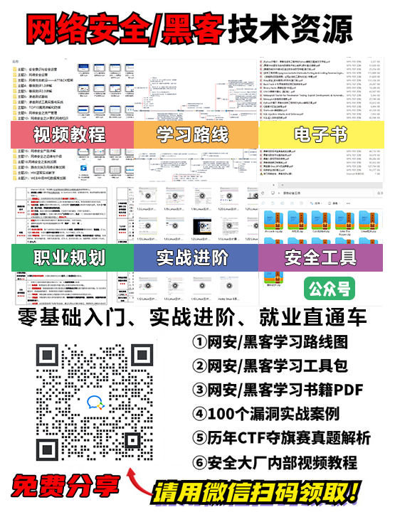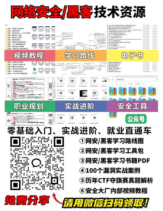 如果你想通过自学进入网络安全这一行,我可以把我自己整理收藏的这些教程分享给你,