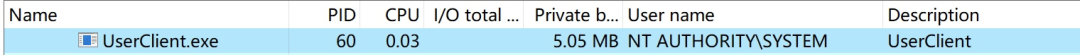这里我们通过Process Hacker可以看到UserClient.exe进程对应的用户就是SYSTEM:
