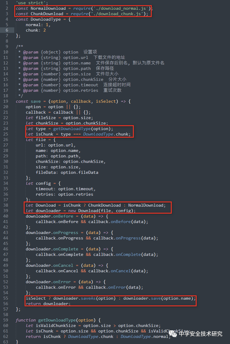 接着我们来完整的阅读下代码即可发现整个逻辑,首先根据你传递的参数来判断要调用NormalDownload(正常下载)还是ChunkDownload(分块下载),接着根据isSelect函数来判断调用save还是saveAs方法: