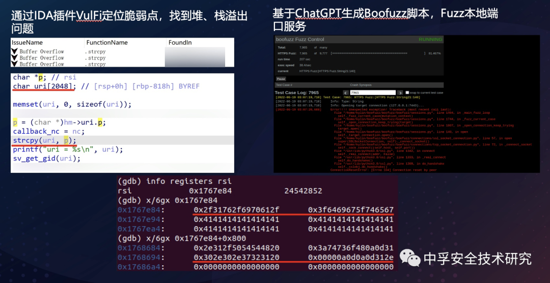 缓冲区溢出问题太多太多了,我们可以通过通过IDA插件VulFi定位脆弱点,很轻松的在一些客户端应用上找到堆、栈溢出问题。除此之外,也可以通过Boofuzz来对客户端应用开启的本地网络服务进行Fuzz,从而找到溢出问题。