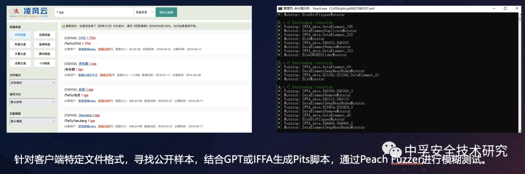 除了本地网络服务以外,最经典的、利用最多的还是特定文件格式处理客户端,如常用的Word、Excel。我在实际挖掘的过程中找到了一些图片处理的客户端程序,它用于各种各样的图片处理,我们可以找一些比较不常见的图片格式,并且通过网盘资源找到一些样本文件,丢给GPT或IFFA来分析文件格式,并输出Pits脚本,通过Peach Fuzzer来进行Fuzz工作。