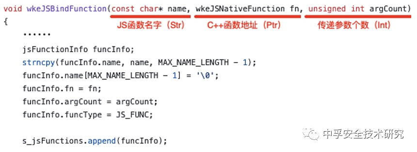 中,发现wkeJSBindFunction方法提供了JSBridge的功能,将JavaScript函数绑定到C++中一个本地函数。