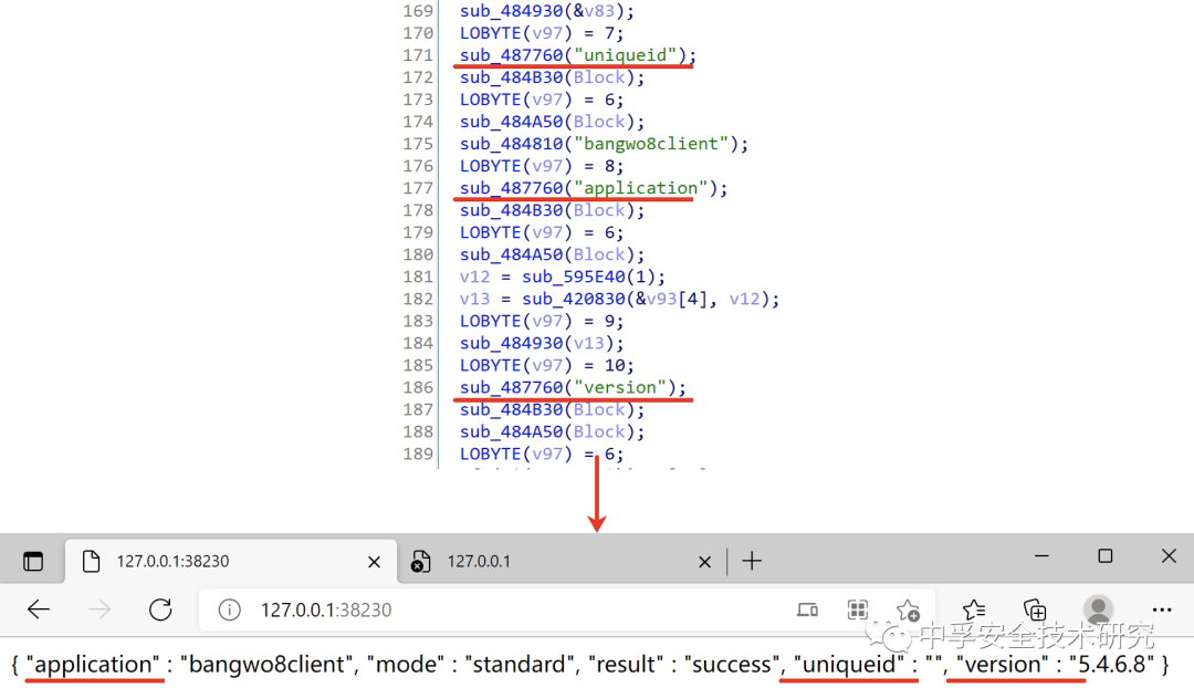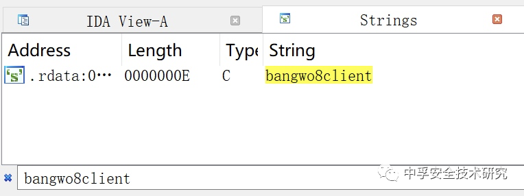 我们可以选取响应报文中的bangwo8client字符串在IDA的Strings窗口中进行搜索,通过这样的方式来进行逻辑的回溯。