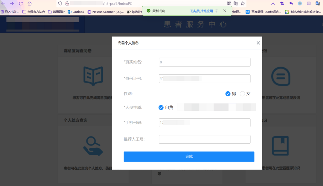访问风险地址,输入重置的密码,手机号、证件号,然后