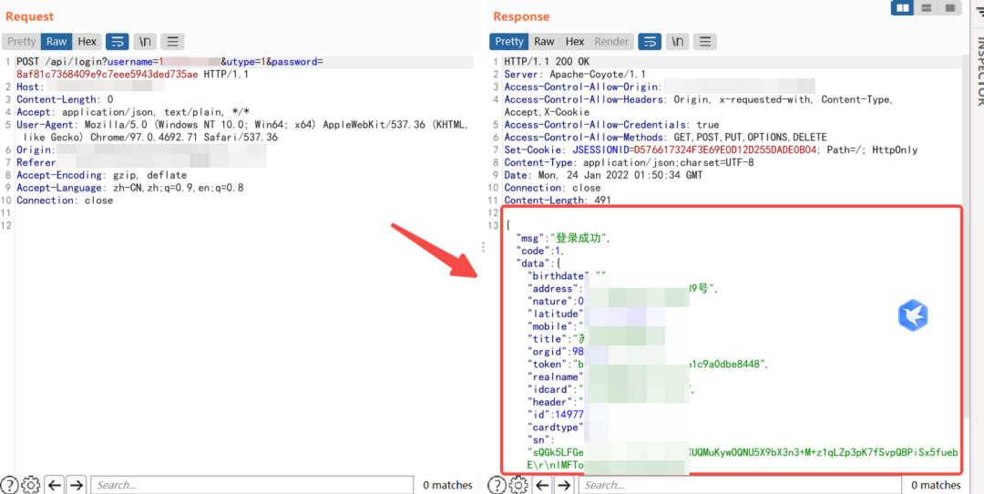 身份证正确的返回包应该如下,同理抓取其他地方的成功返回包直接替换