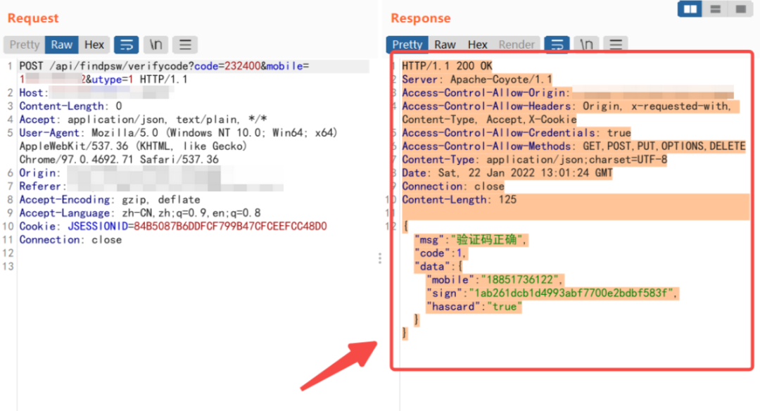 {"msg":"验证码正确","code":1,"data":{"mobile":"xxxx","sign":"1ab261dcb1d4993abf7700e2bdbf583f","hascard":"true"}}