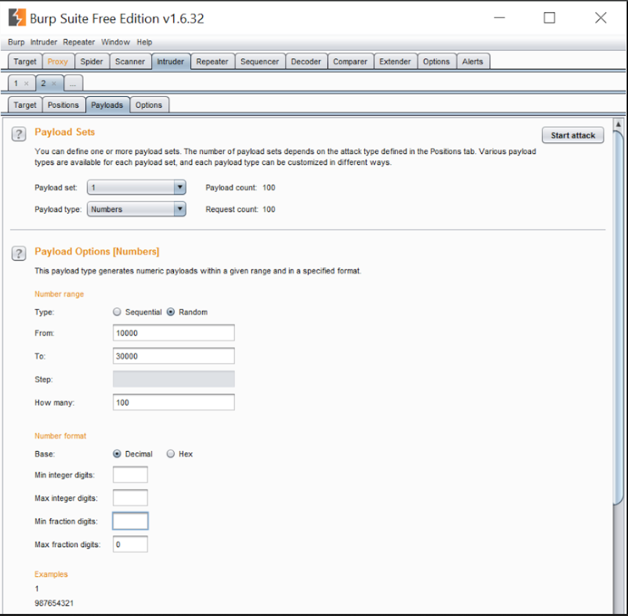 允许范围更广,比如最后6位。为了节省时间,我们只测试了已知范围内的数字。)然后配置Burp随机生成该5位数字,在10000到30000之间选择整数,这个范围涵盖了Jan和网络上的VIN: