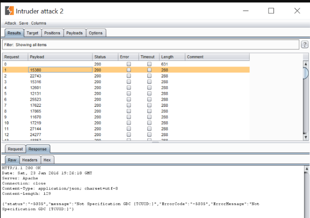 这样我们就可以连续发送请求,每个请求的有效载荷只在VIN的最后五位数字不同。我们不需要测试这个范围内所有2万个可能的VIN,只需发送请求直到找到