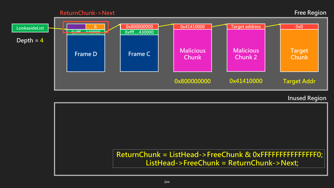 NextChunk = ListHead->FreeChunk & 0xFFFFFFFFFFFFFFF0