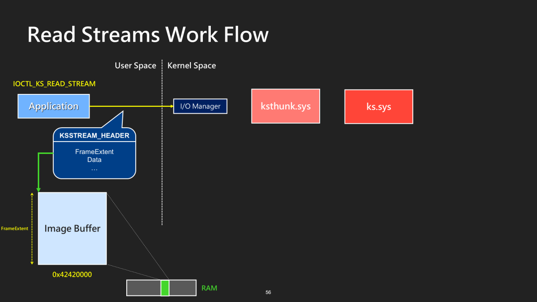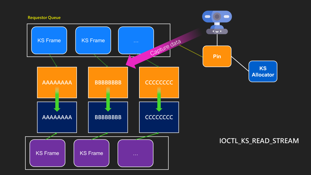 在 Kernel Streaming 中,当从设备读取数据时,Kernel Streaming 会分配 KS 帧来承载流媒体数据,如视频或音频。
