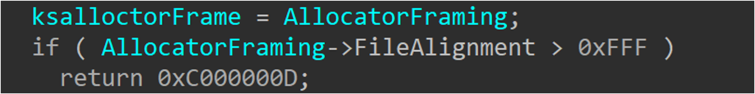 KS 只检查对齐掩码是否大于 0xFFF。如果小于 0xFFF,它会接受任何值,即使这不是一个有效的对齐方式。