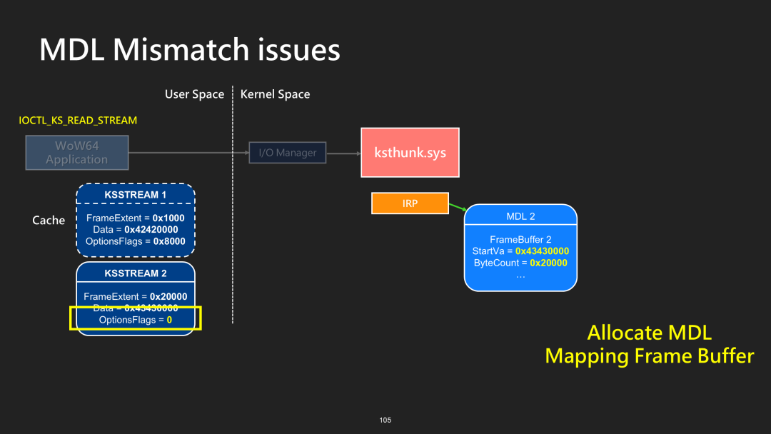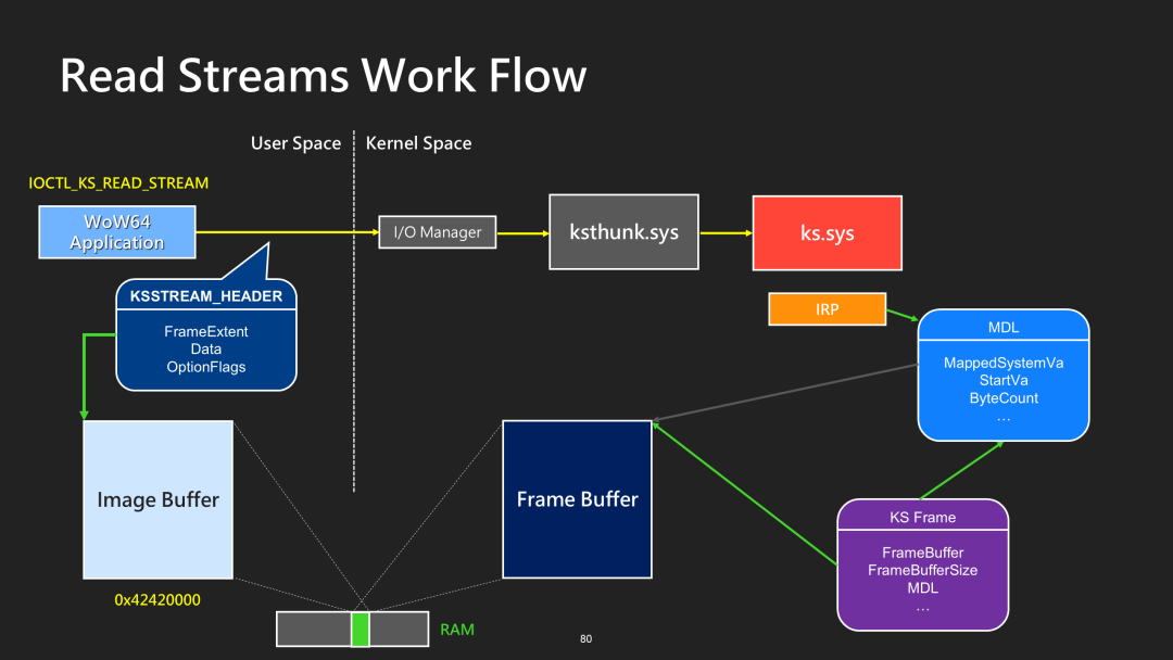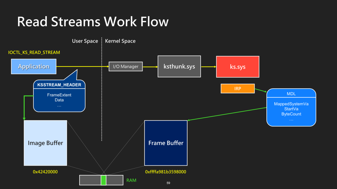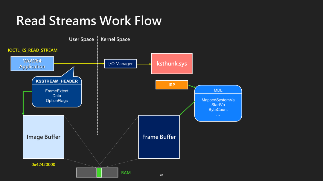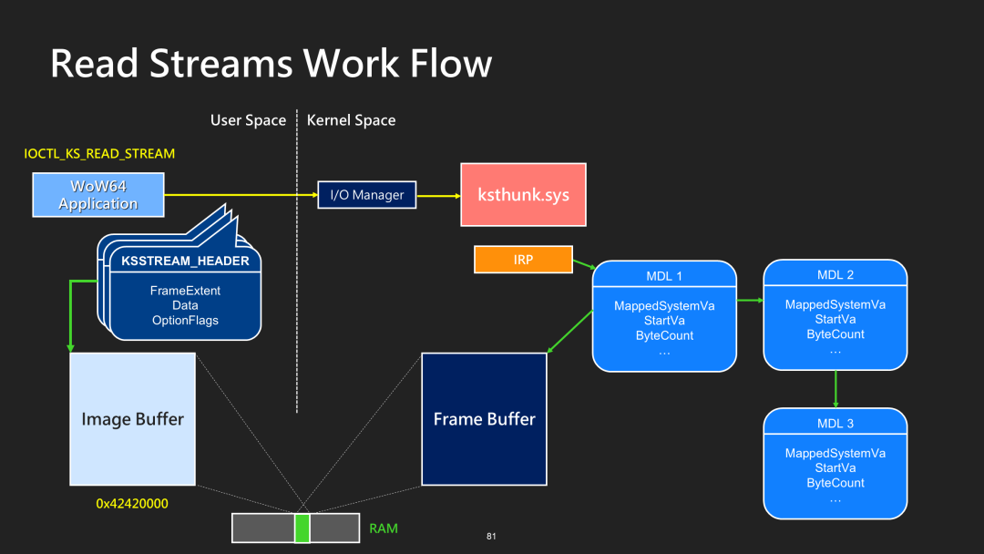 就本文而言,理解 Kernel Streaming 使用 MDL 来管理用户空间和内核空间之间共享的帧缓冲区就足够了。
