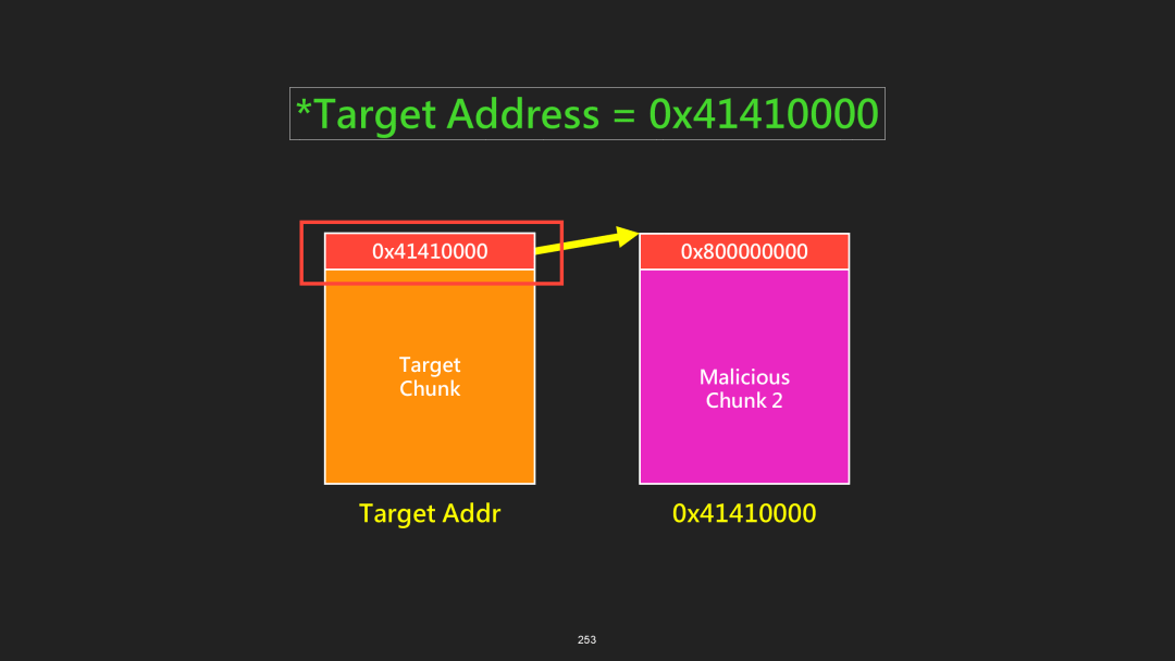 的结构就会转变为上图所示的布局。最终,分配器将释放我们的目标地址。