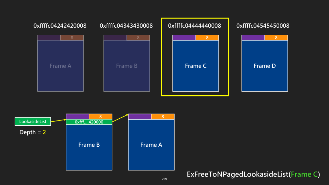 PSLIST_ENTRY ExFreeToNPagedLookasideList(...,PSLIST_ENTRY Chunk){