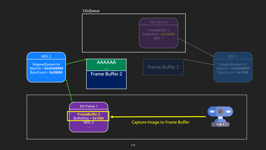KS 帧中的帧缓冲区存储着实际的图像或音频数据。大多数帧缓冲区由 Memory Descriptor List (MDL) 描述,它映射了这些缓冲区的物理内存。如果您不熟悉 MDL 是什么,不用担心 —— 这里有一个快速概述。