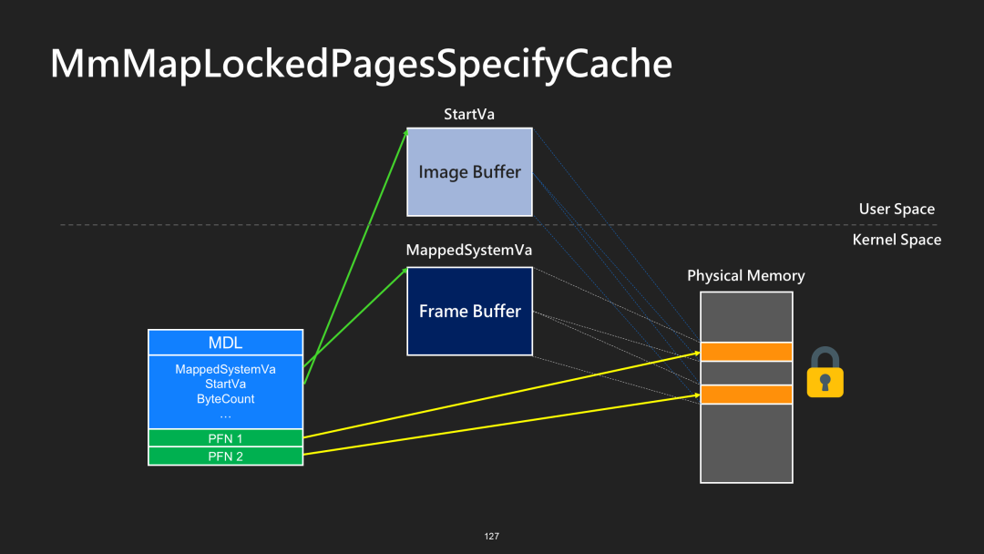 当内核需要访问内存时,它会调用 MmMapLockedPagesSpecifyCache