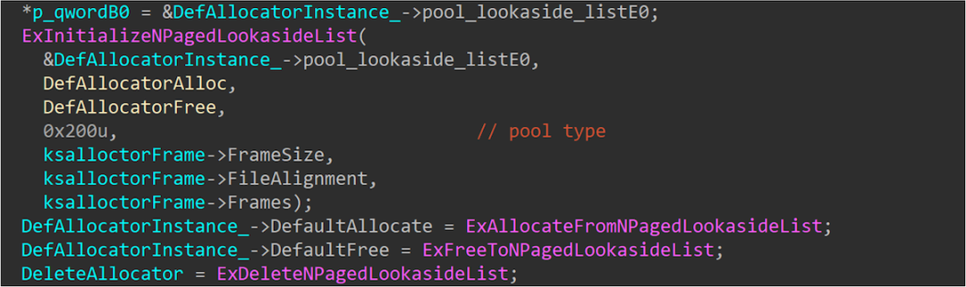 PSLIST_ENTRY ExAllocateFromNPagedLookasideList(...){