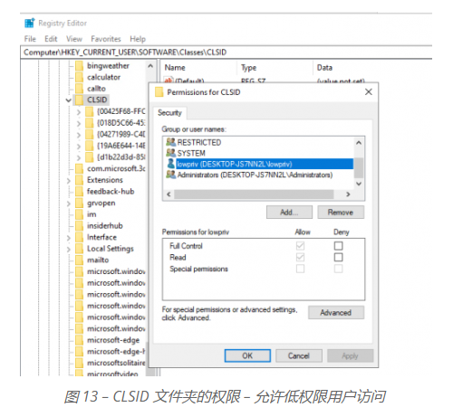 Windows 中的 HKEY_CURRENT_USER (HKCU) 注册表配置单元是一个至关重要的组件,用于存储特定于当前登录用户的配置设置和首选项。它包含用户特定的软件设置、用户界面配置和网络连接等信息,从而为系统上的每位用户提供个性化体验。通过将这些设置与 HKEY_LOCAL_MACHINE (HKLM) 中更广泛的系统范围配置隔离,HKCU 可确保一个用户所做的更改不会影响其他用户。这意味着当前运行的用户即使以低权限用户身份也可以读取和写入注册表项。因此,通过在 HKCU\SOFTWARE\Classes\CLSID\ 中添加一个包含进程正在查找的 DLL 的 COM ID 的注册表项,就可以让此进程从 WindowsApps 或 System32 文件夹之外加载 DLL。