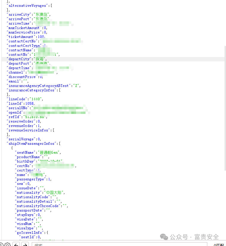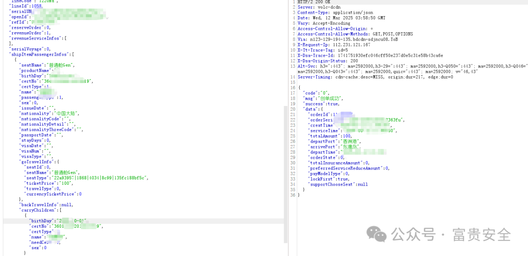 虽然无法利用,但是这个接口引发了另一种思考,订单号查询正常只返回订单对应乘客信息,但是这里却返回了用户的凭证字段