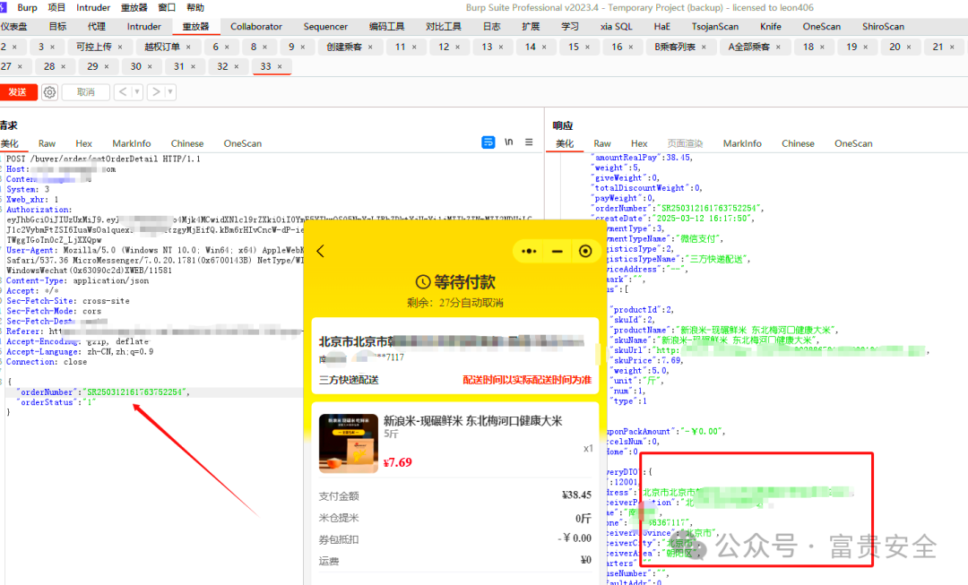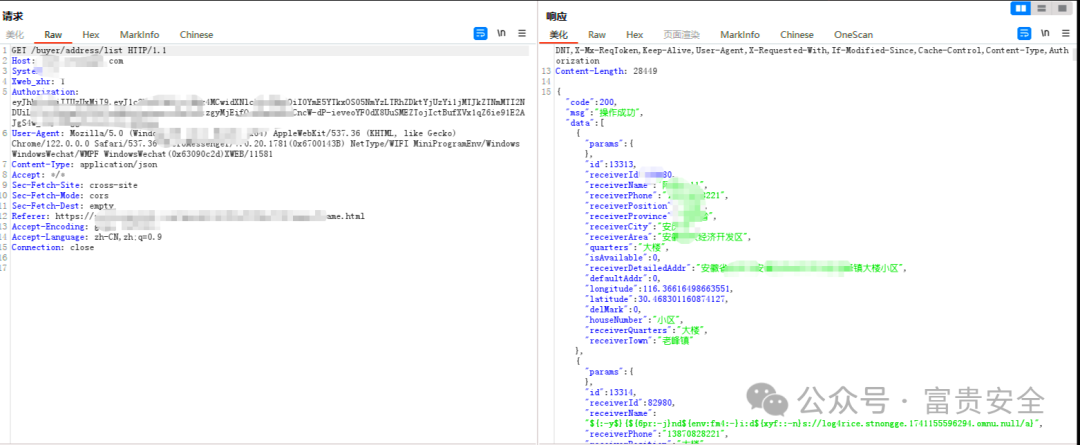 通过这两个创建订单接口和查询订单接口拿下全站收货地址包括二要素信息