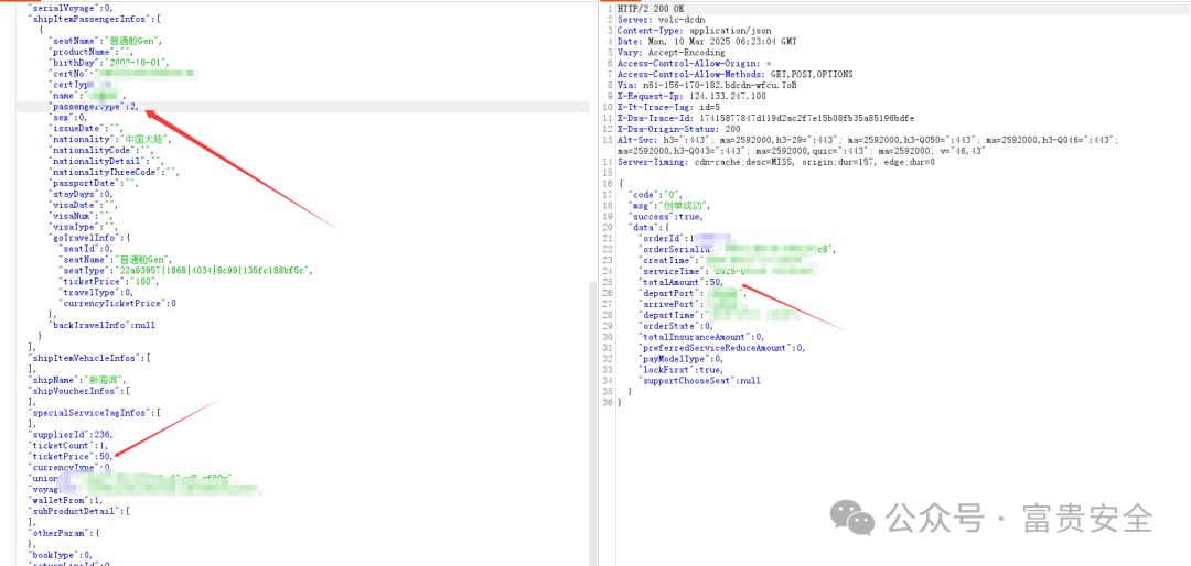 这个时候我想再提高一下危害, 既然订单的价格是由用户类型所关联的价格决定了,我是否可以自主的再次修改增值的业务参数呢?享受到最高的优惠, 船票分为上等中等, 利用普通订单价格享受高等舱位服务,通过对比普通舱订单和头等舱位订单定位到seatId