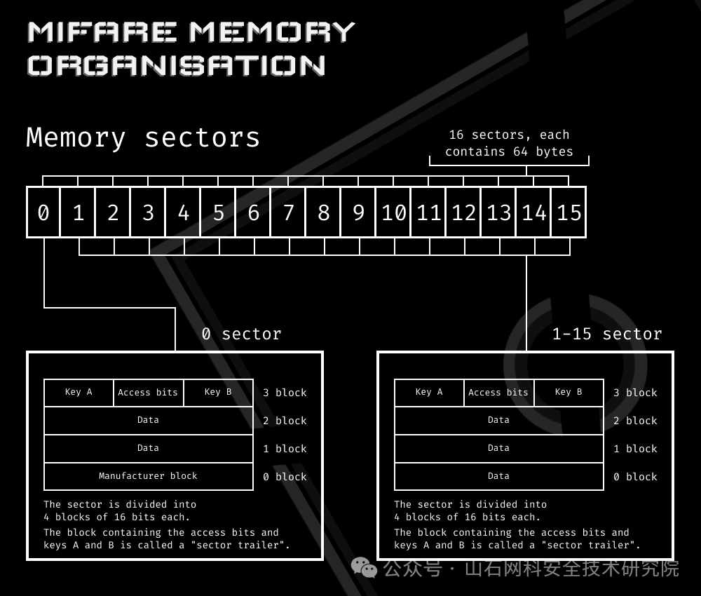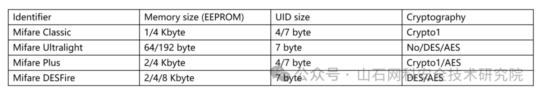 大多数基于Mifare的物理门禁控制系统都使用Mifare Classic 1K(1K字节内存;4字节UID);因此,笔者对其进行了更详细的研究。