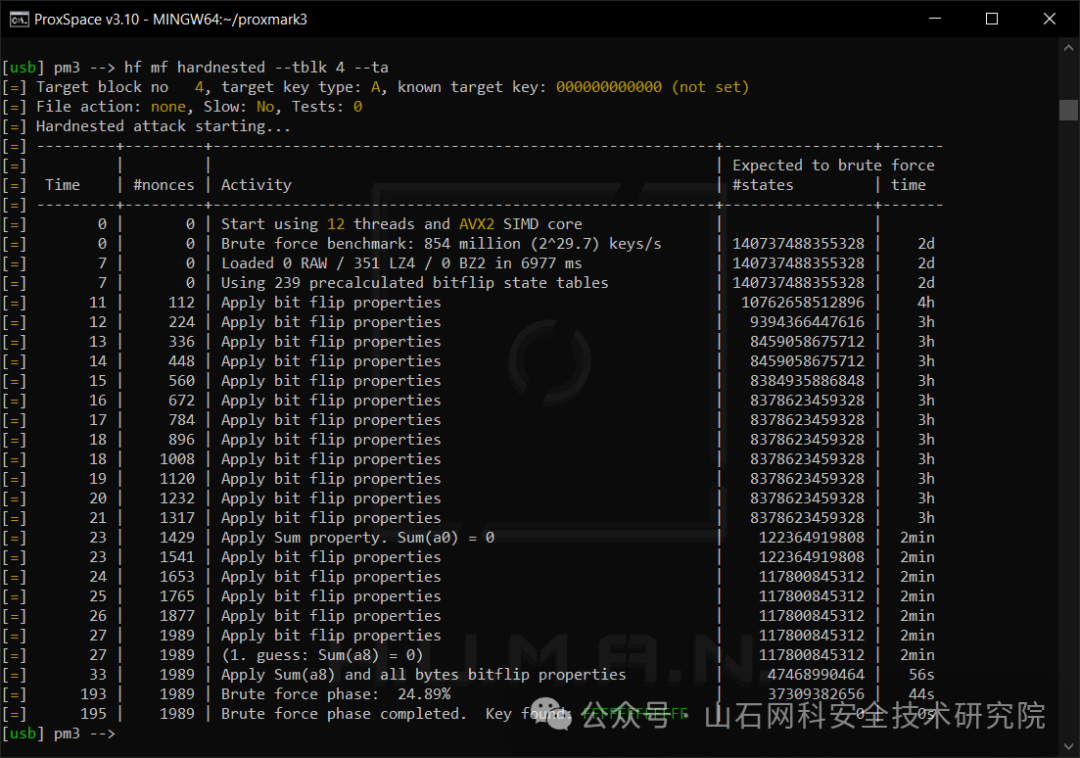 这种技术的一个明显缺点是需要大量时间,但你不必用它来恢复整个标识符:在得到一个密钥后,你就可以进行hardnestd或nested攻击!