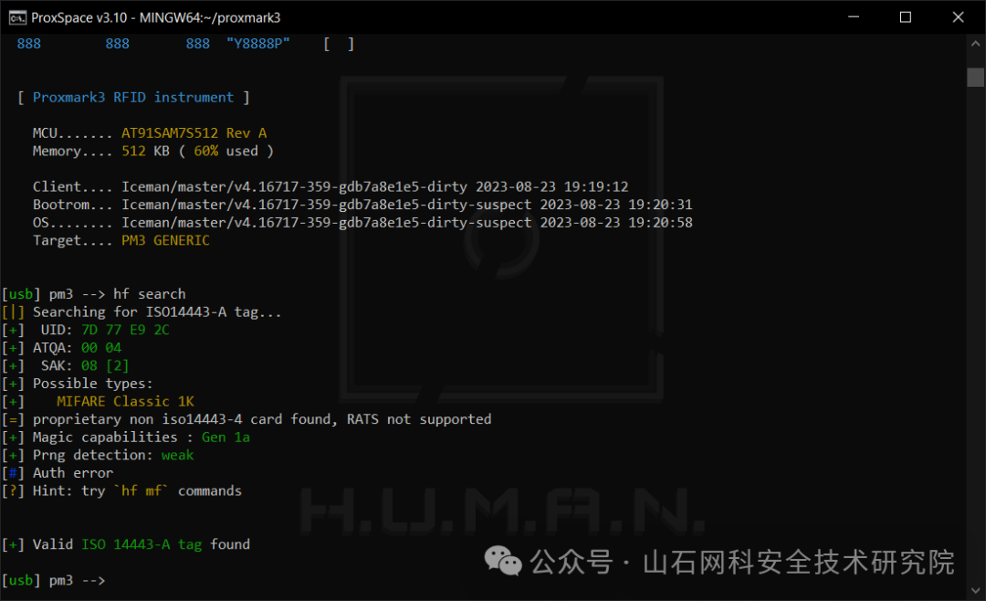 有趣的是,有些PACS仅使用所有基于ISO 14443 Type A的系统通用的7字节 UID进行识别。在这种情况下,系统操作与EM410X类似,您可以基于有效 UID生成的标识符尝试枚举。