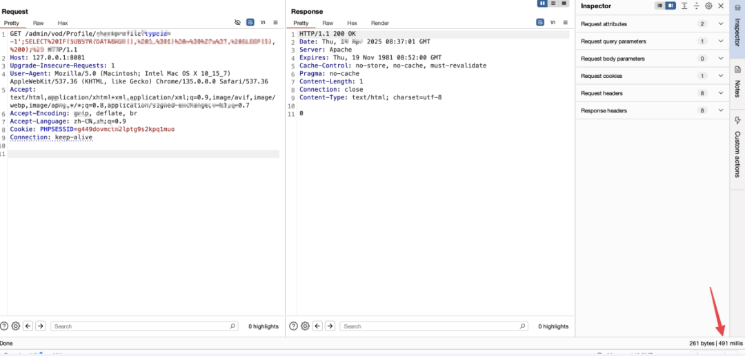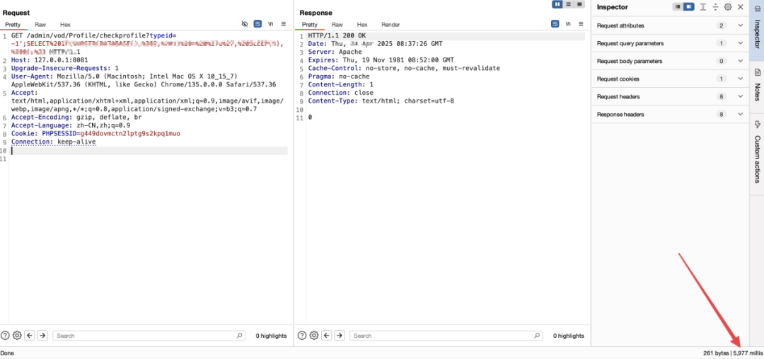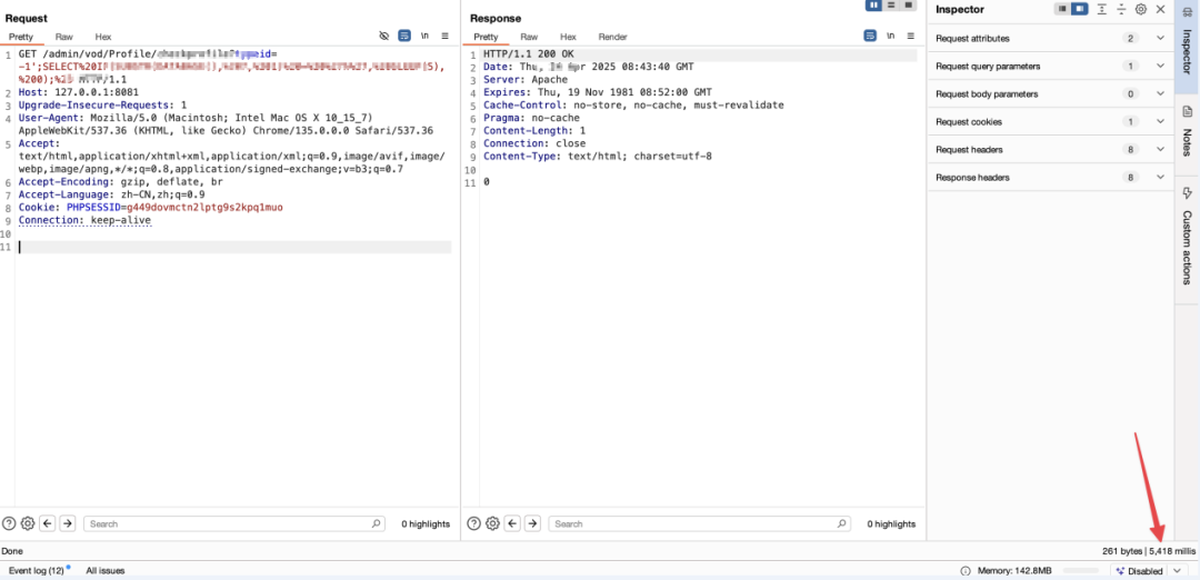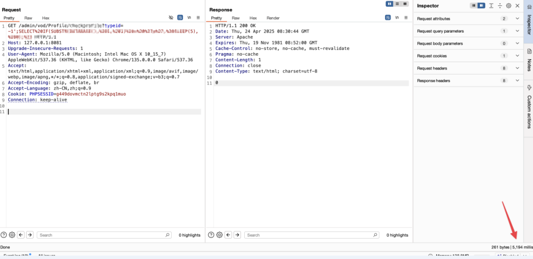 - 修改第一位为a延时事件明显变小,说明存在延时注入。
