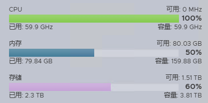查看ESXi主机状态,CPU利用率达到了恐怖的100 %,要不是还开了15台虚拟机,估计Kali负载奔着48就去了。