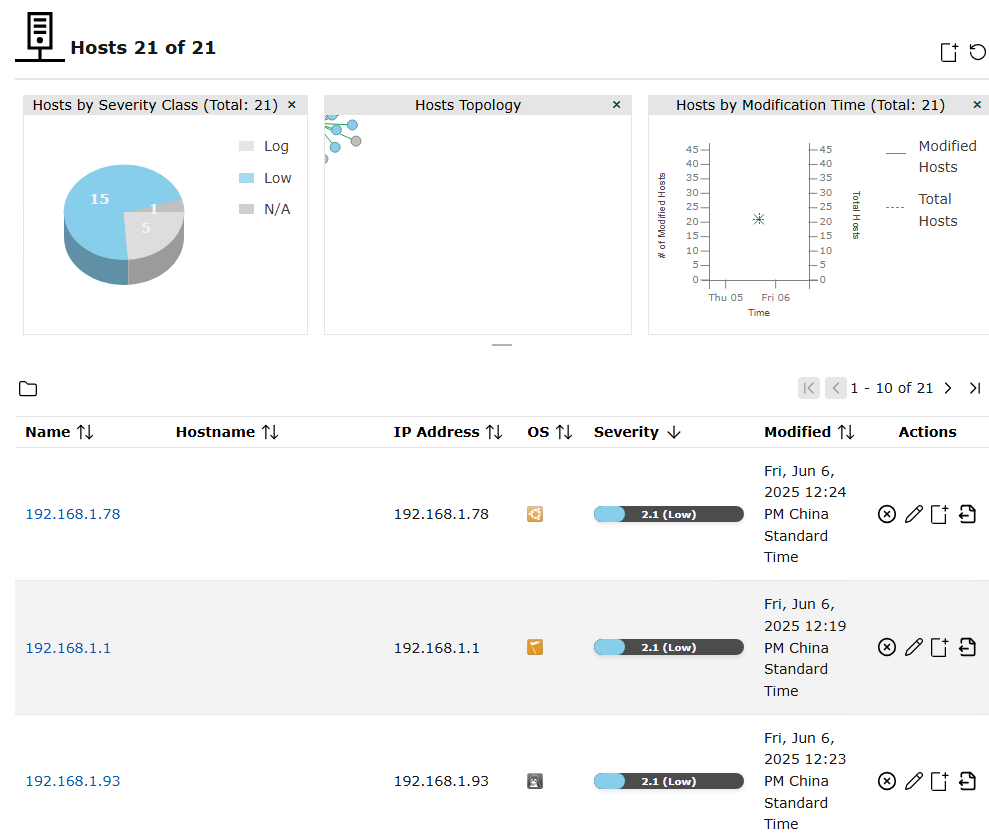 此时,我们再次查看主机资产,这里显示就有21个主机了,跟实际情况是相符的。
