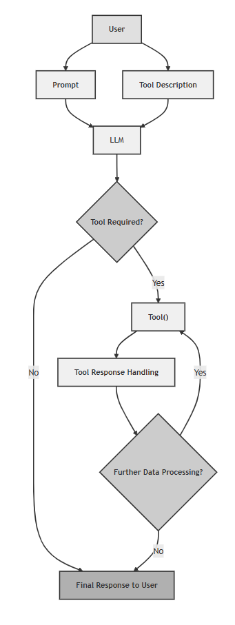 LLM 处理提示,并在需要时将工具调用格式化为其响应的一部分。