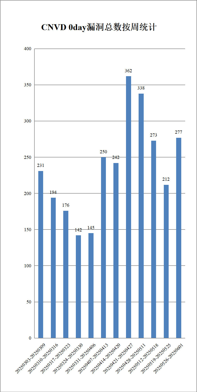 国家信息安全漏洞共享平台(以下简称CNVD)本周共收集、整理信息安全漏洞425个,其中高危漏洞251个、中危漏洞153个、低危漏洞21个。漏洞平均分值为7.03。本周收录的漏洞中,涉及0day漏洞277个(占65%),其中互联网上出现“TOTOLINK CA300-PoE命令注入漏洞(CNVD-2025-10606)、TOTOLINK CA300-PoE CloudSrvUserdataVersionCheck函数命令注入漏洞”等零日代码攻击漏洞。本周CNVD接到的涉及党政机关和企事业单位的漏洞总数5087个,与上周(9722个)环比减少48%。