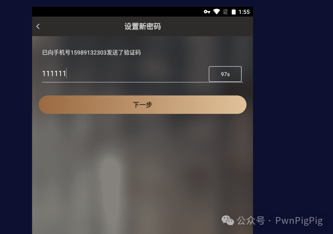 现在要进行换绑新的手机,我们随便输入6个1,点击下一步进行抓包
