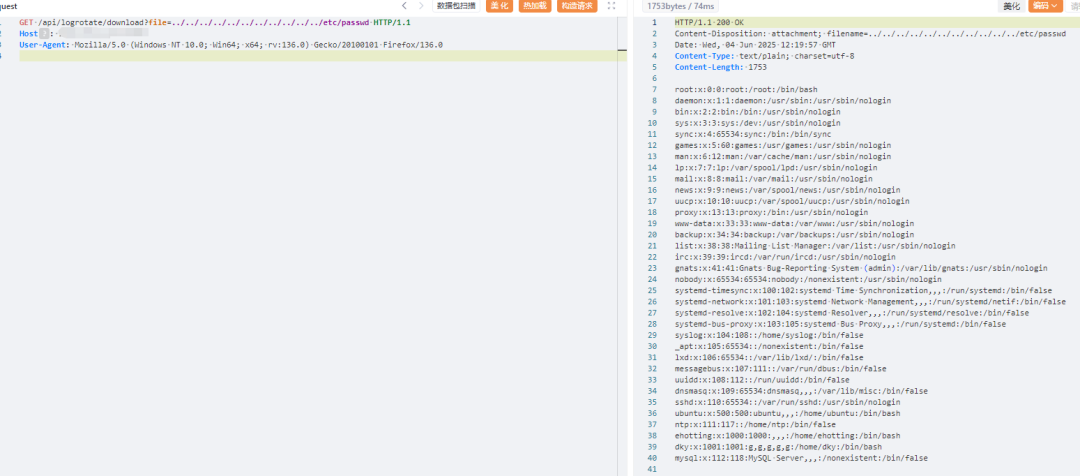 处任意文件读取漏洞,未经身份验证攻击者可通过该漏洞读取系统重要文件(如数据库配置文件、系统配置文件)、数据库配置文件等等,导致网站处于极度不安全状态。