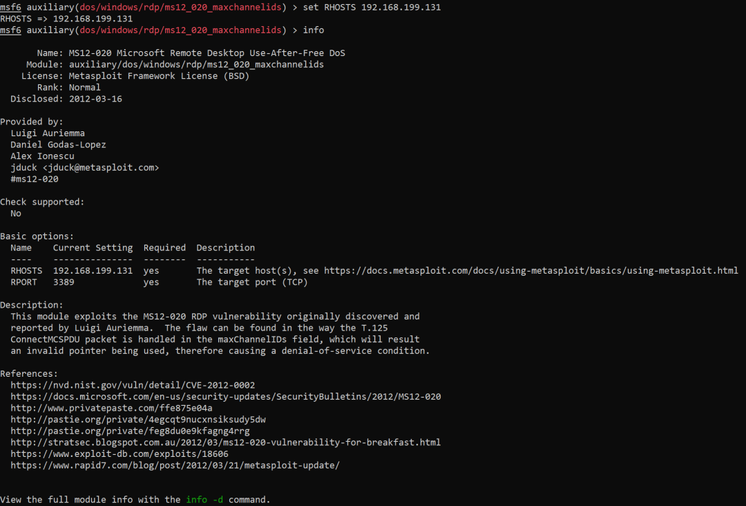use auxiliary/dos/windows/rdp/ms12_020_maxchannelids