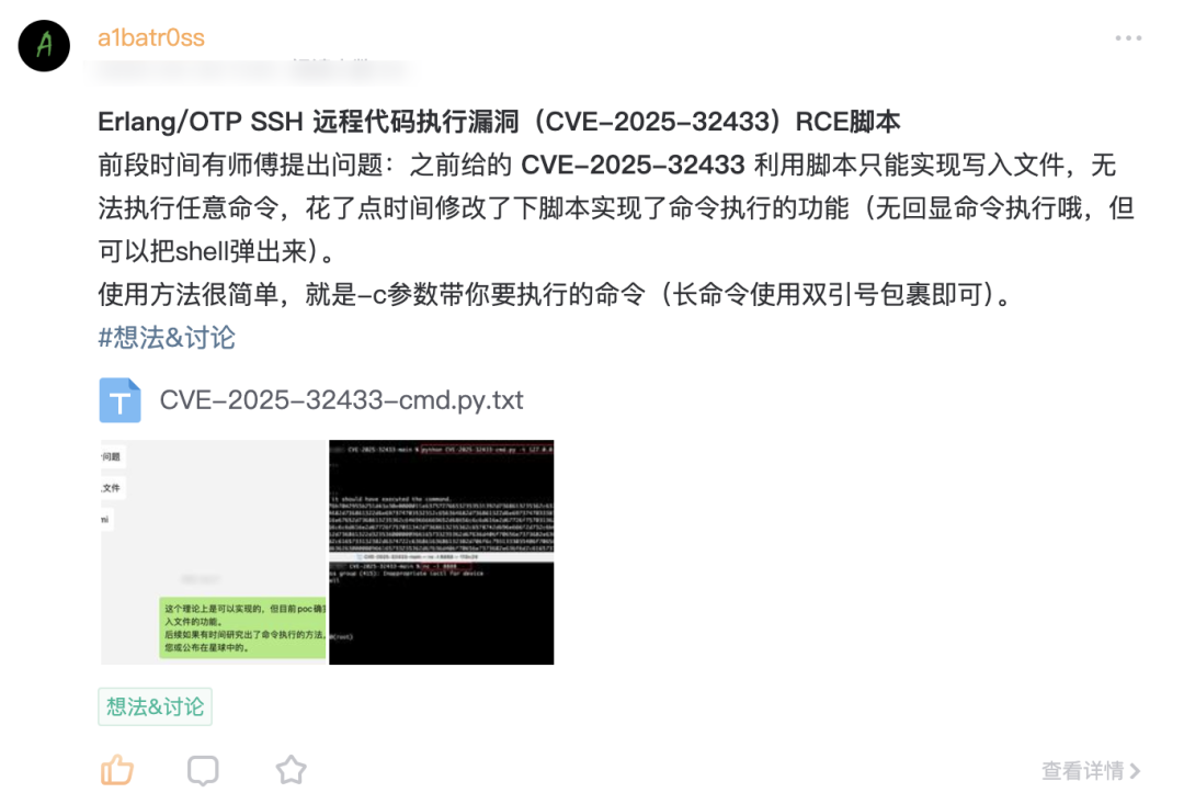 漏洞:Erlang/OTP SSH 远程代码执行漏洞(CVE-2025-32433)POC及一键部署环境