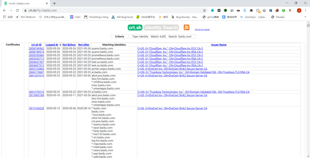 优点:可以发现暴力破解无法爆破出来的子域,例如:test-xxxxx-xxxx.baidu.com