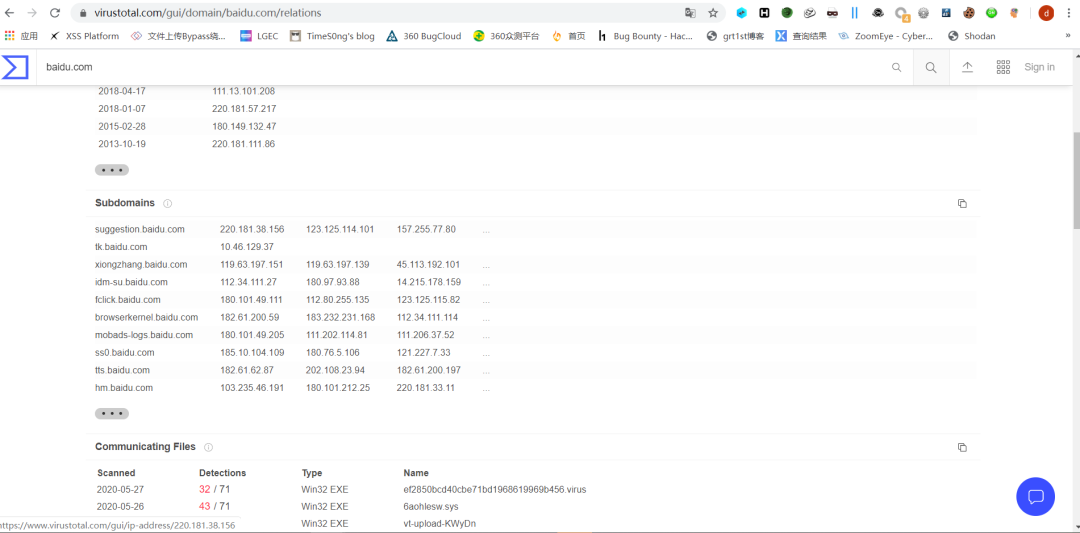 常用的站点:ip138、微步在线 VIRUSTOTAL等等