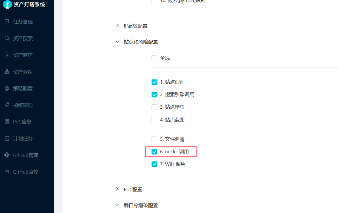 回到ARL系统页面,在策略配置中,配置一条勾选”nuclei调用”的策略