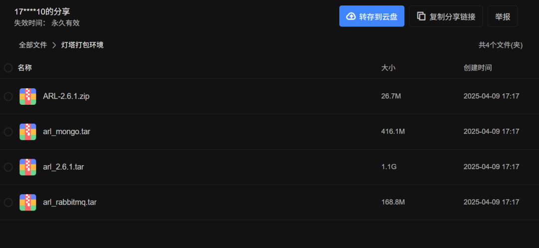 将上面的容器文件tar包和ARL的压缩包zip包下载下来,先解压zip文件