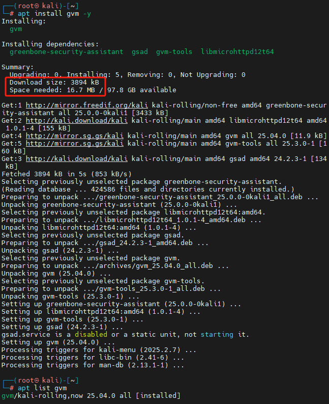 两条命令搞定!Kali原生集成GVM漏洞扫描器,比Docker省5GB空间