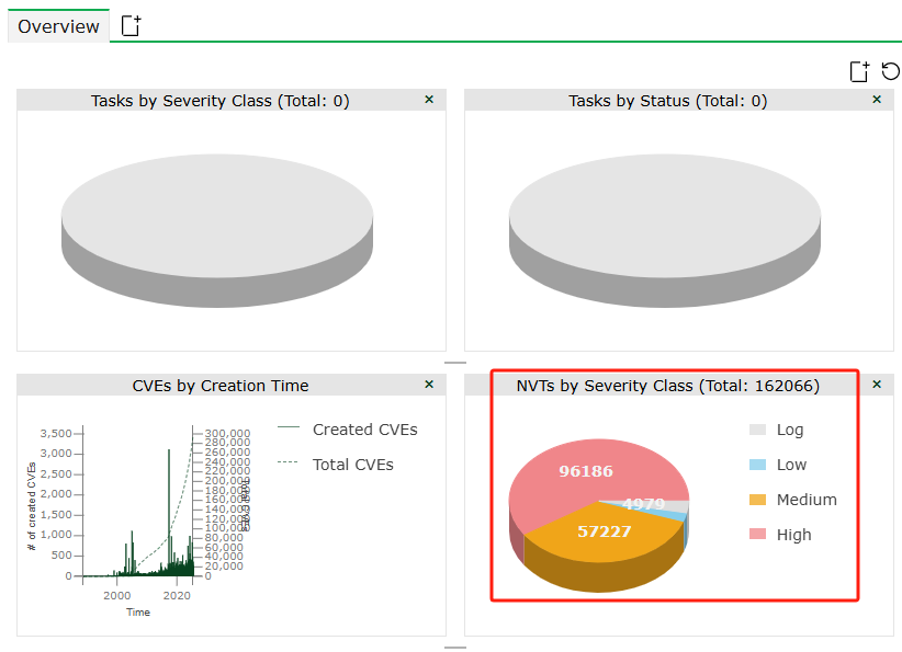 在开始第一次扫描之前,Greenbone需要解析漏洞提要并将其存储到PostgreSQL数据库中。我们可以通过左侧导航栏“Administration”下的“Feed Status”页面,检查NVT提要状态。跟Docker部署一样,这一步也需要耗费很长的时间,在初始化结束之前执行扫描任务,无法保证任务正常执行。