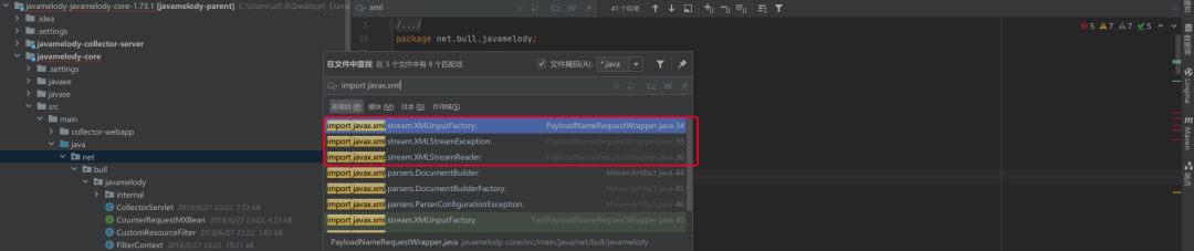 使用关键字搜索定位Xml使用方法,定位到PayloadNameRequestWrapper.java
