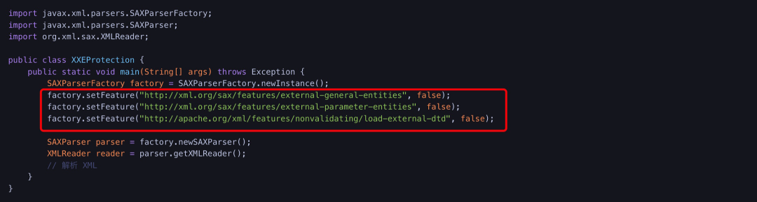 XXE漏洞限制:为了修复XXE漏洞并提高代码的安全性,可以采取以下措施:
